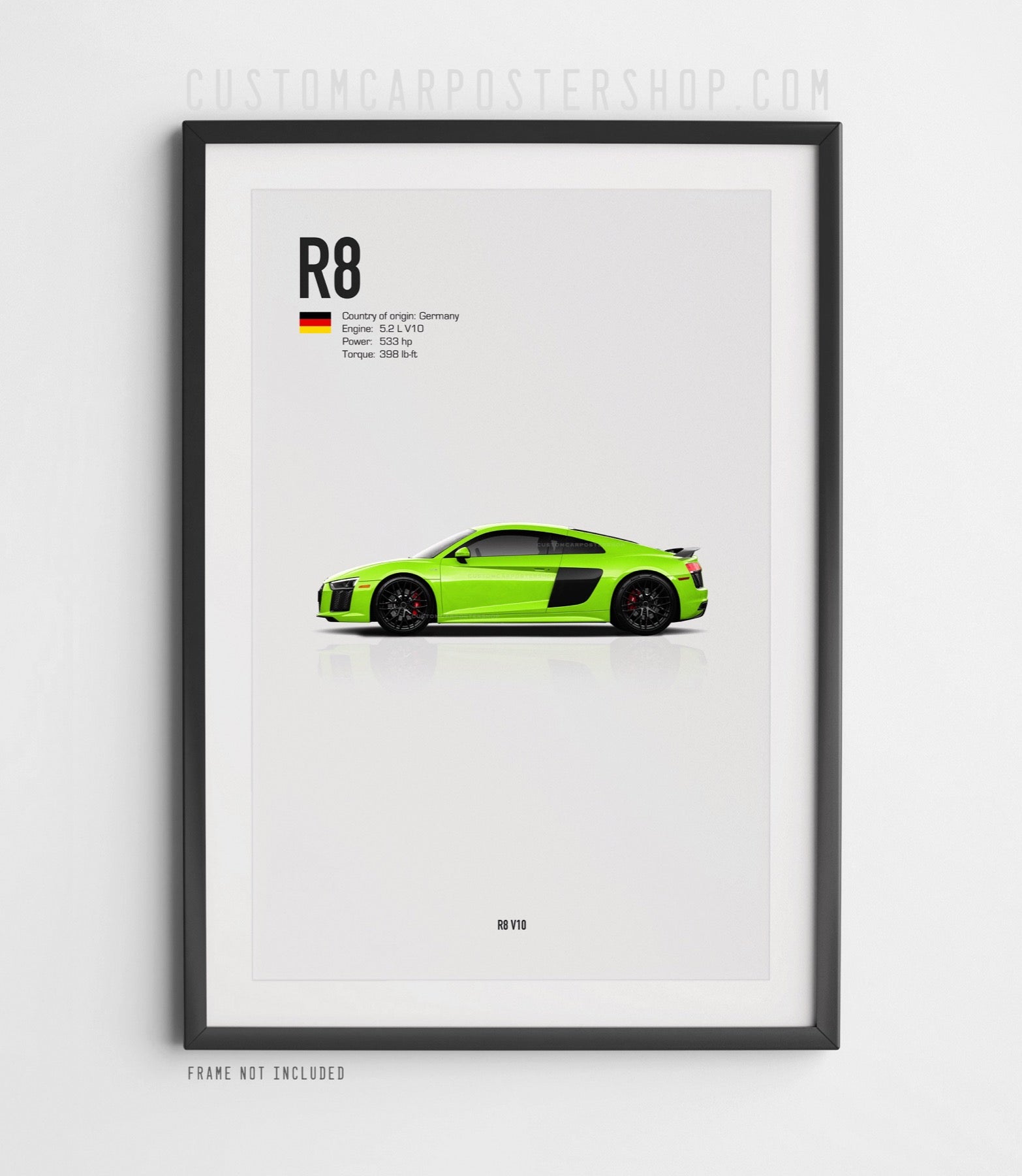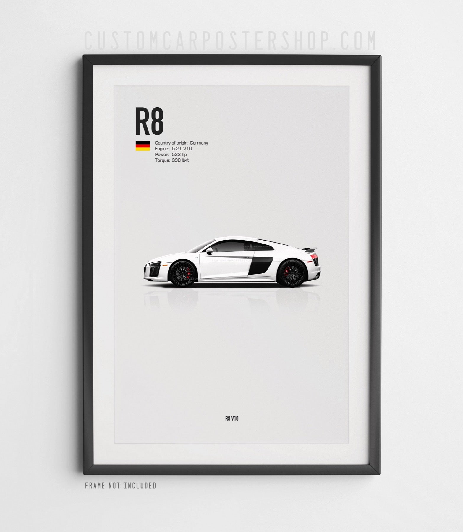 Loaded with photorealistic details, this Audi R8 poster is the perfect addition to any office, garage, showroom, or man cave of an Audi R8 enthusiast.