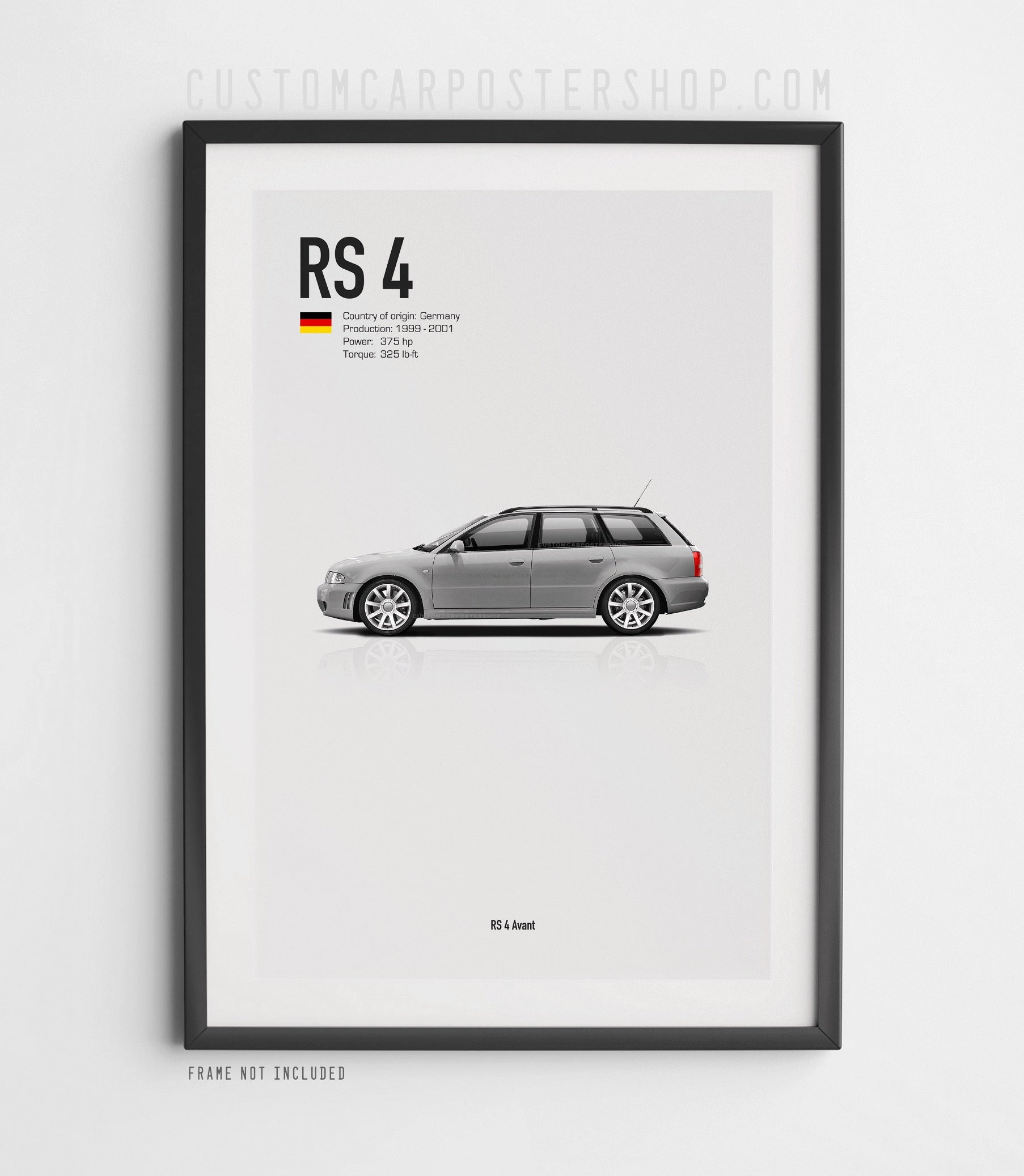 This print features the iconic Audi RS 4 Avant (B5) Poster in various colour. Manufactured between 1999 and 2001.