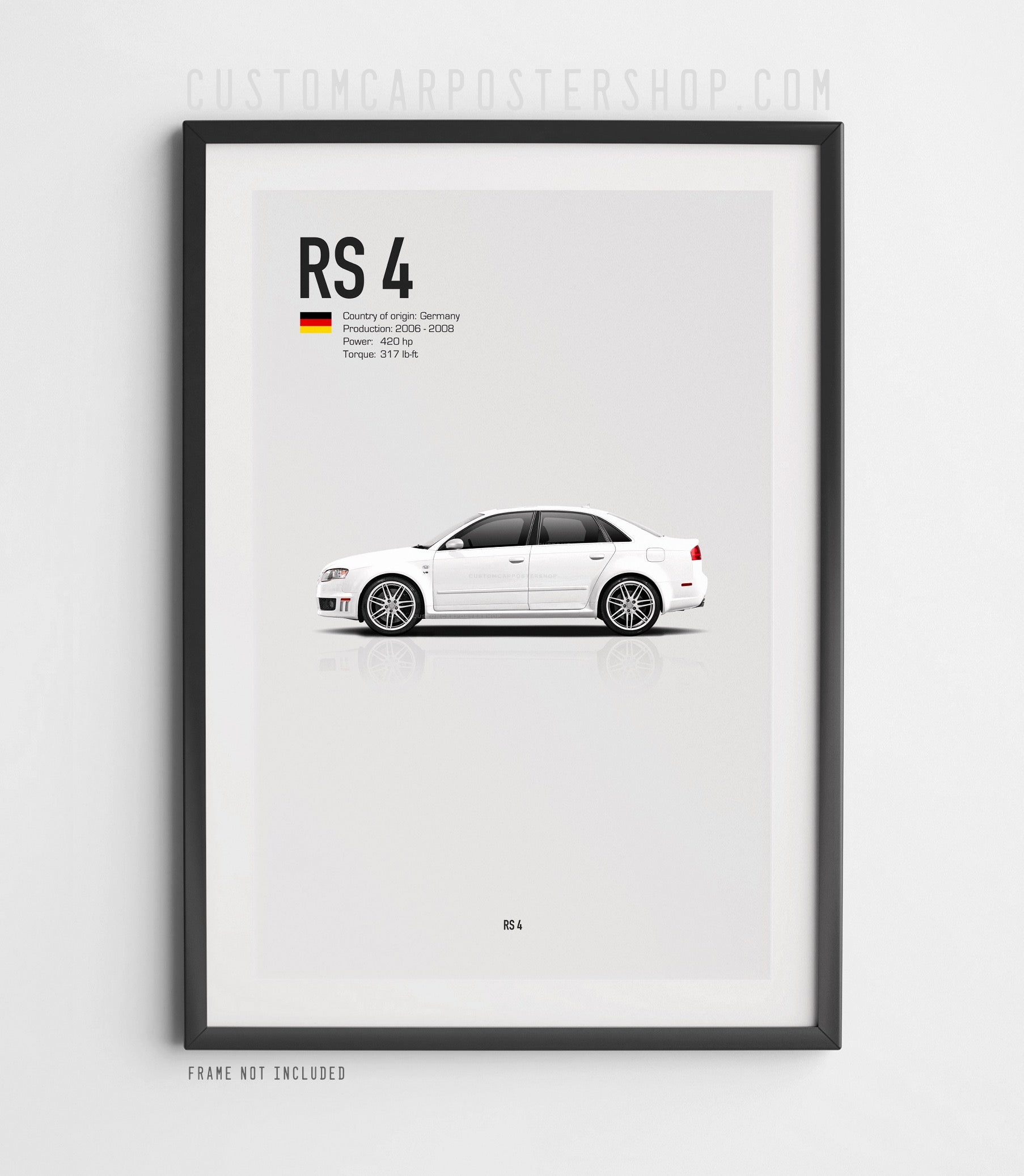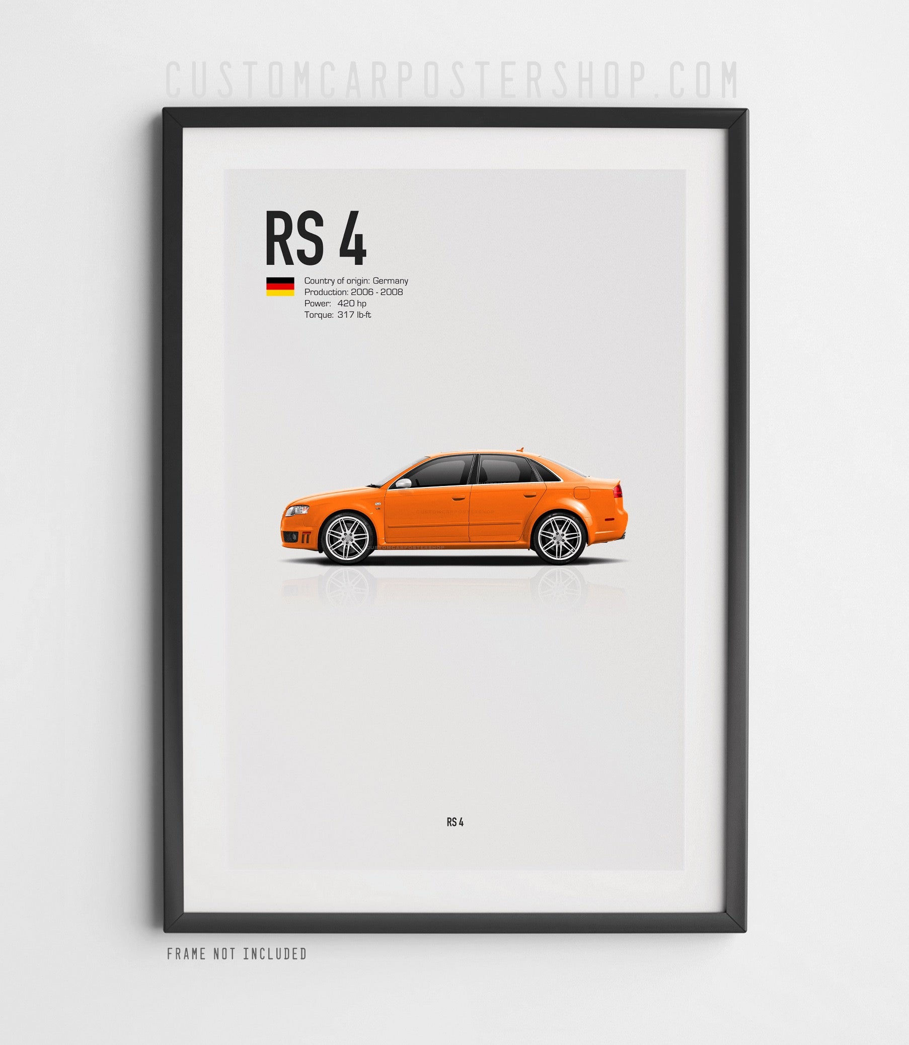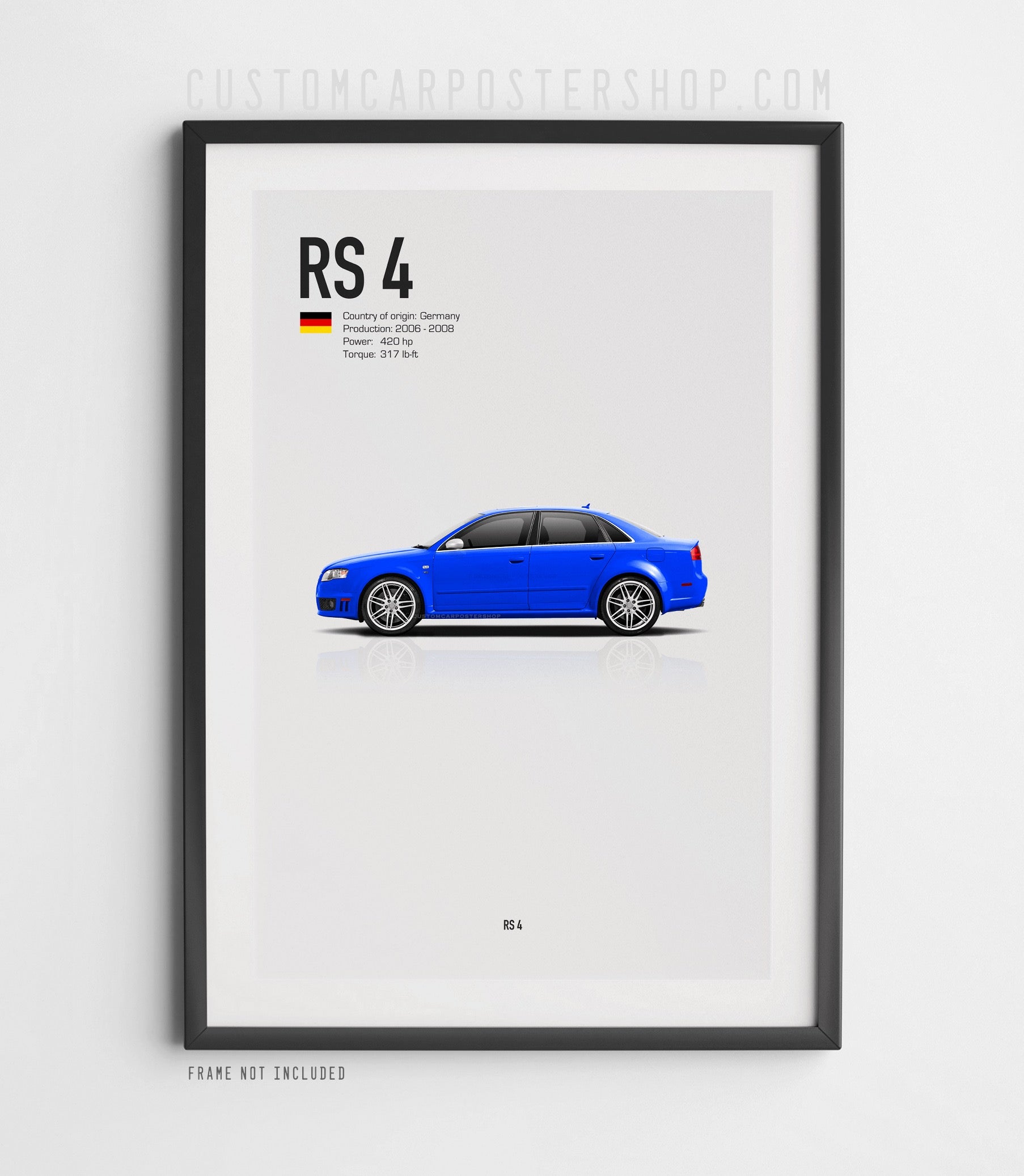 This print features the Audi RS 4 Sedan (B7) in various colour. The B7 chassis RS 7 was manufactured between 2006 and 2008.