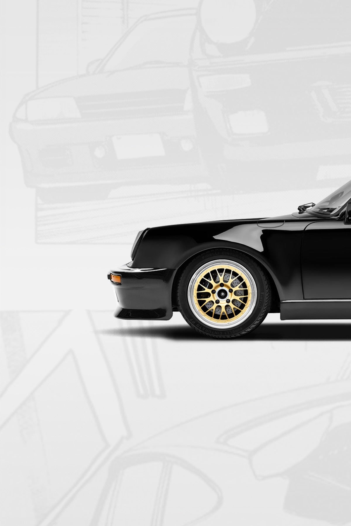 This print features Tatsuya Shima's "Blackbird", a Porsche 911 Turbo 3.3.