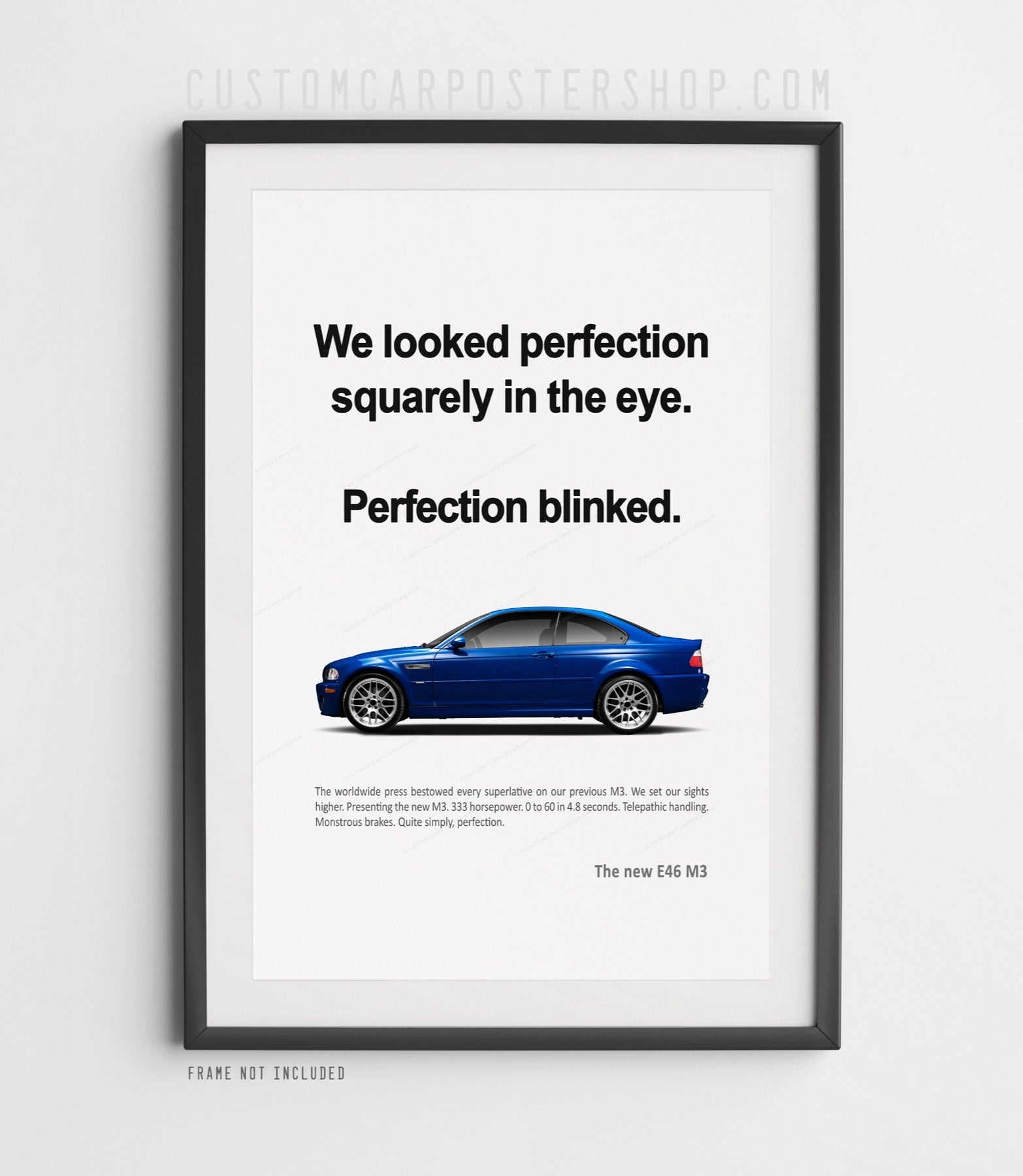 This is a remastered version of the vintage BMW Ad "Perfection Blinked" poster of the BMW E46 M3 Coupe.