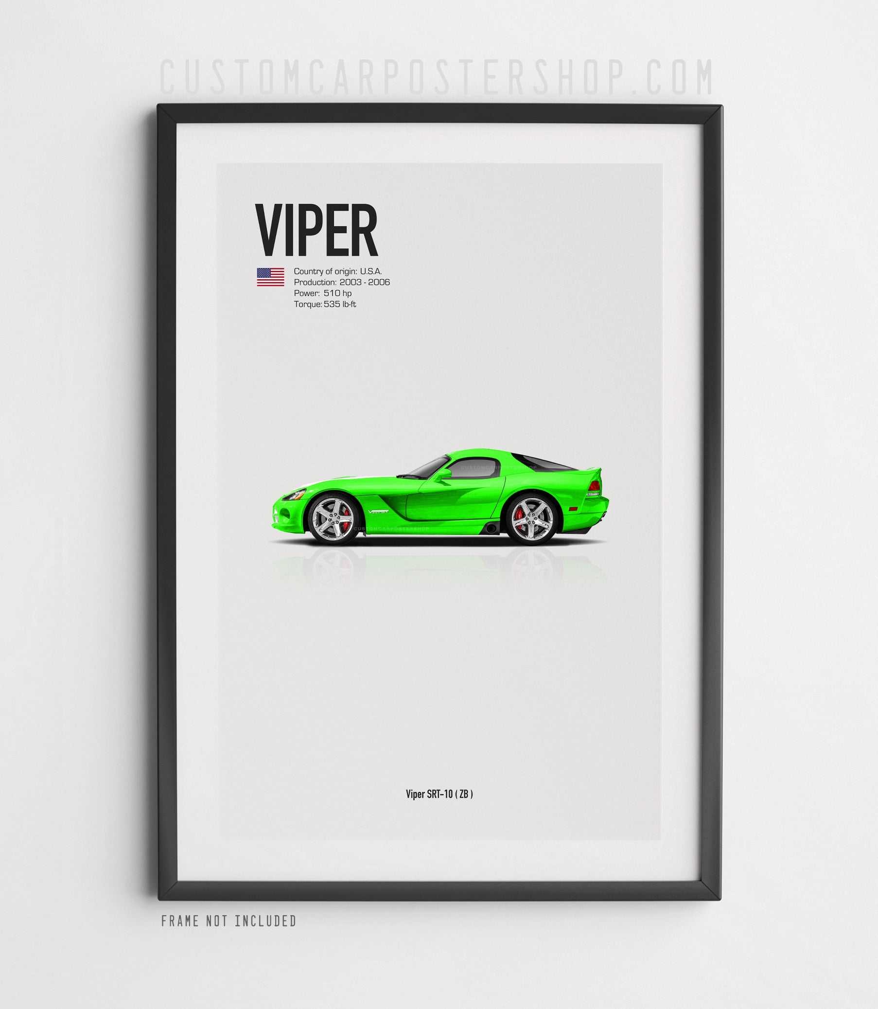 This Dodge Viper poster features the second generation Viper SRT10. Produced between 2003 - 2006.