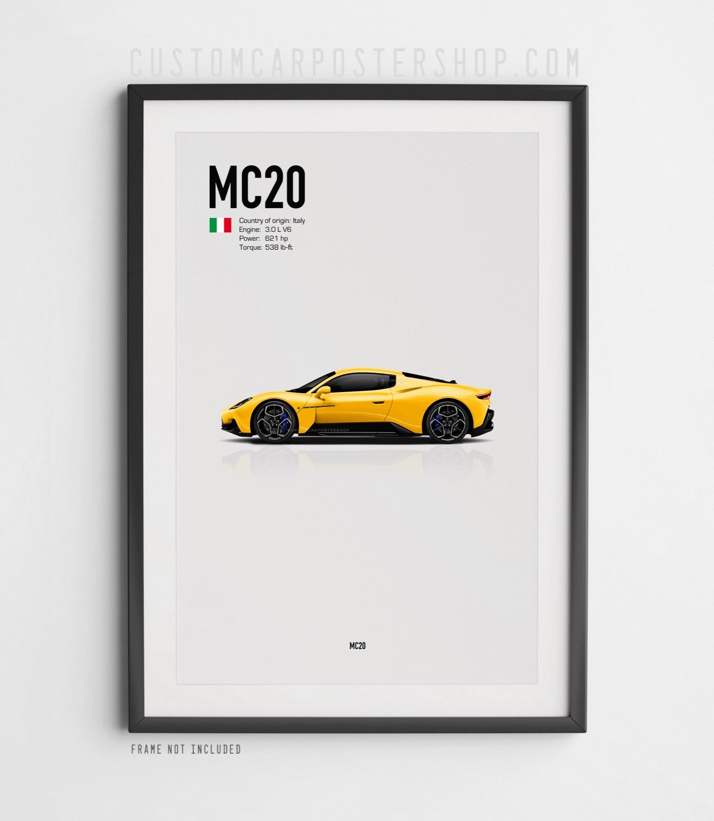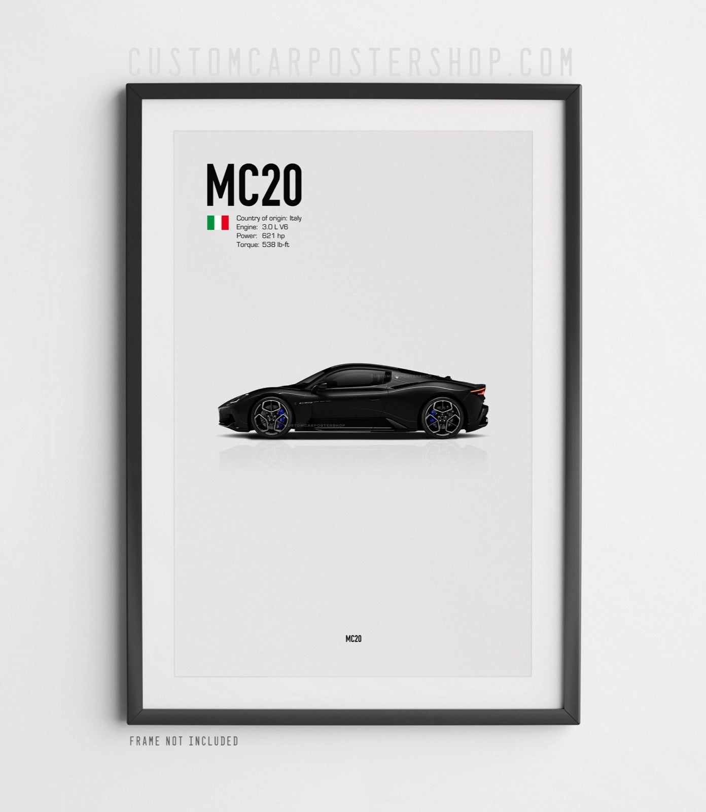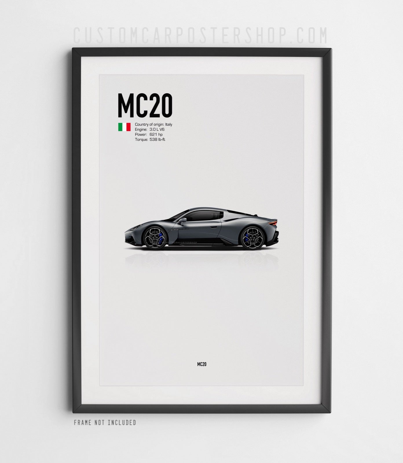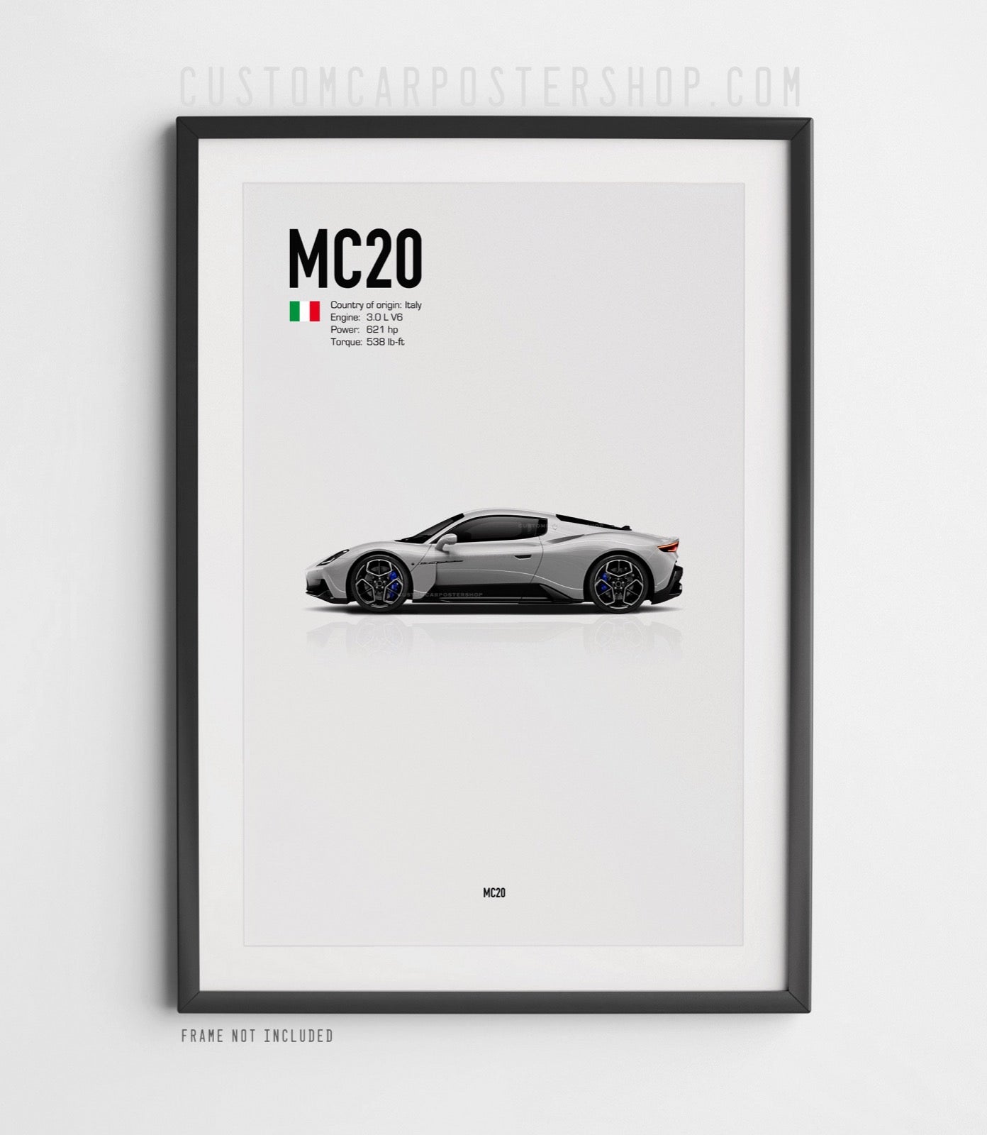 This print features the Maserati MC20 Coupe in multiple colours.