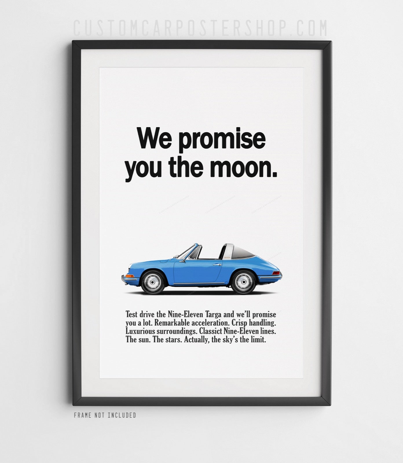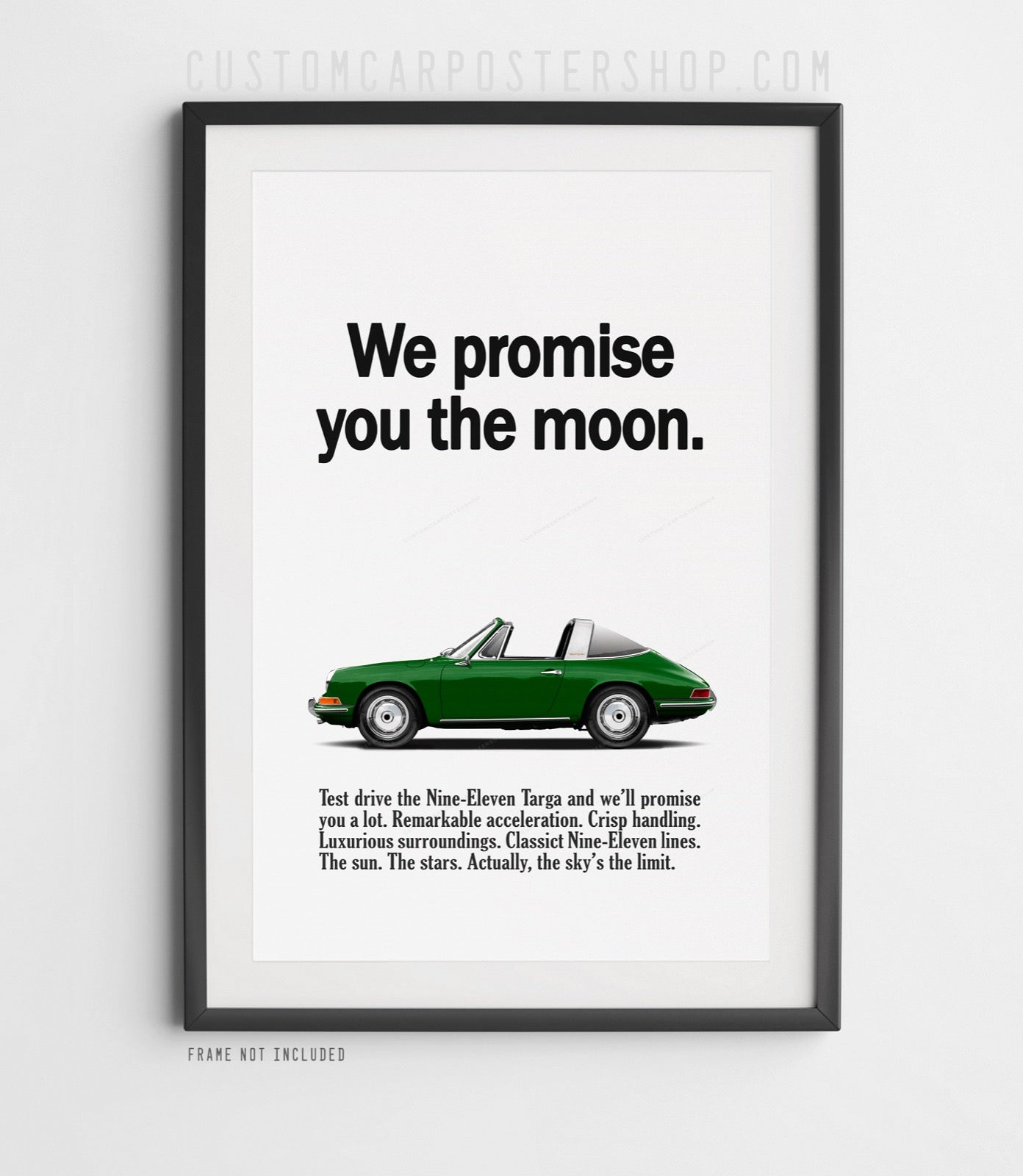 Classic Porsche 911 Targa Print Ad Poster - Moon Promise