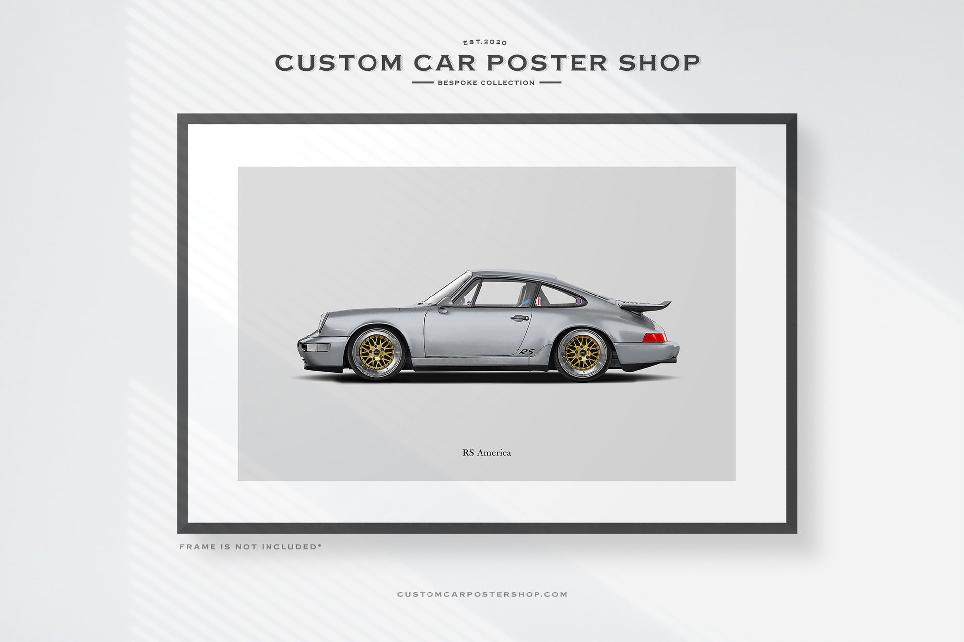 Bespoke print featuring the Porsche 911 RS America in Silver.
