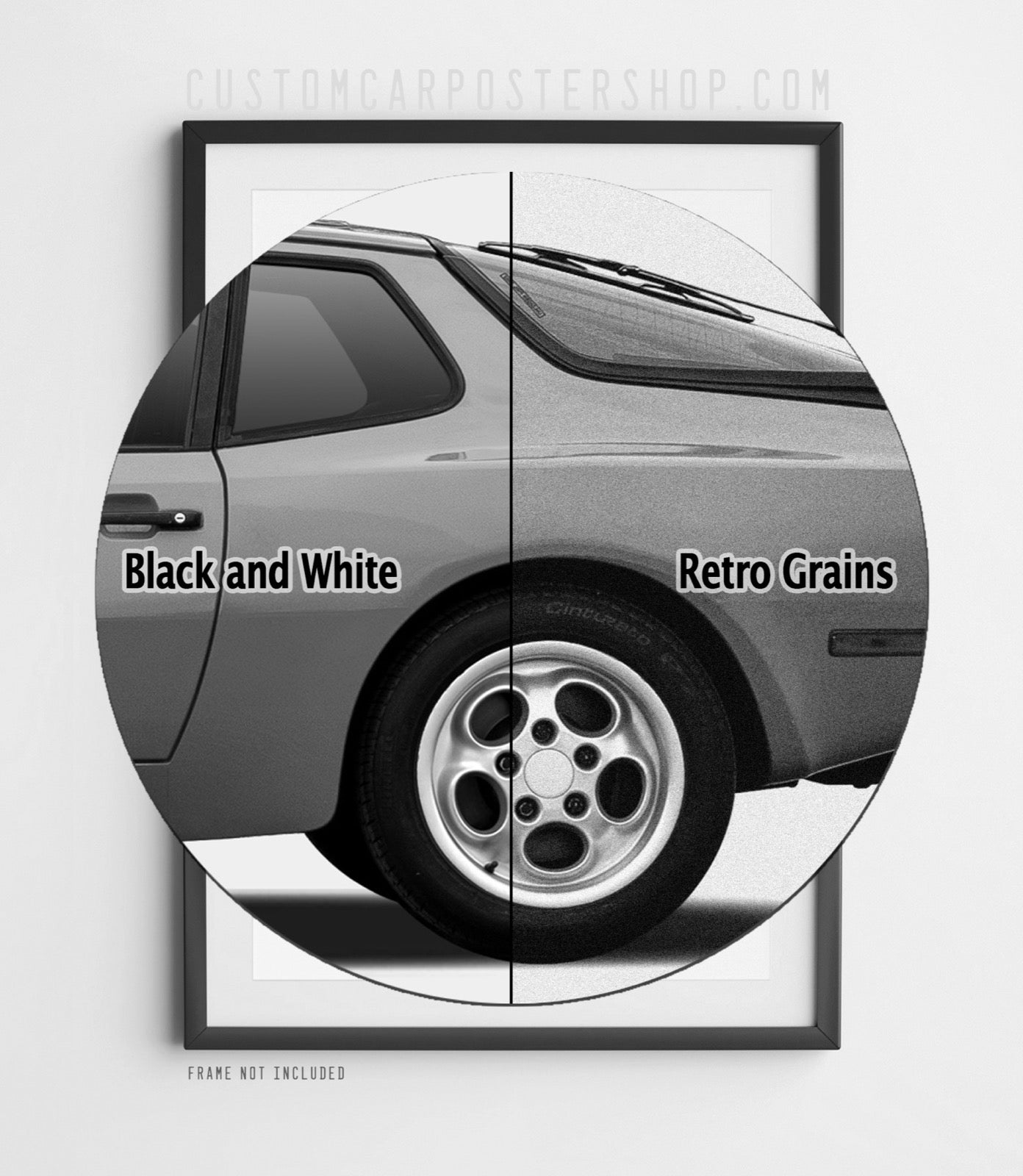 Our remastered version of the Porsche "Fun" print ad poster of the 944 (Non-Turbo). This classic "Phone Dial" wheels are also featured on this Porsche 944.
