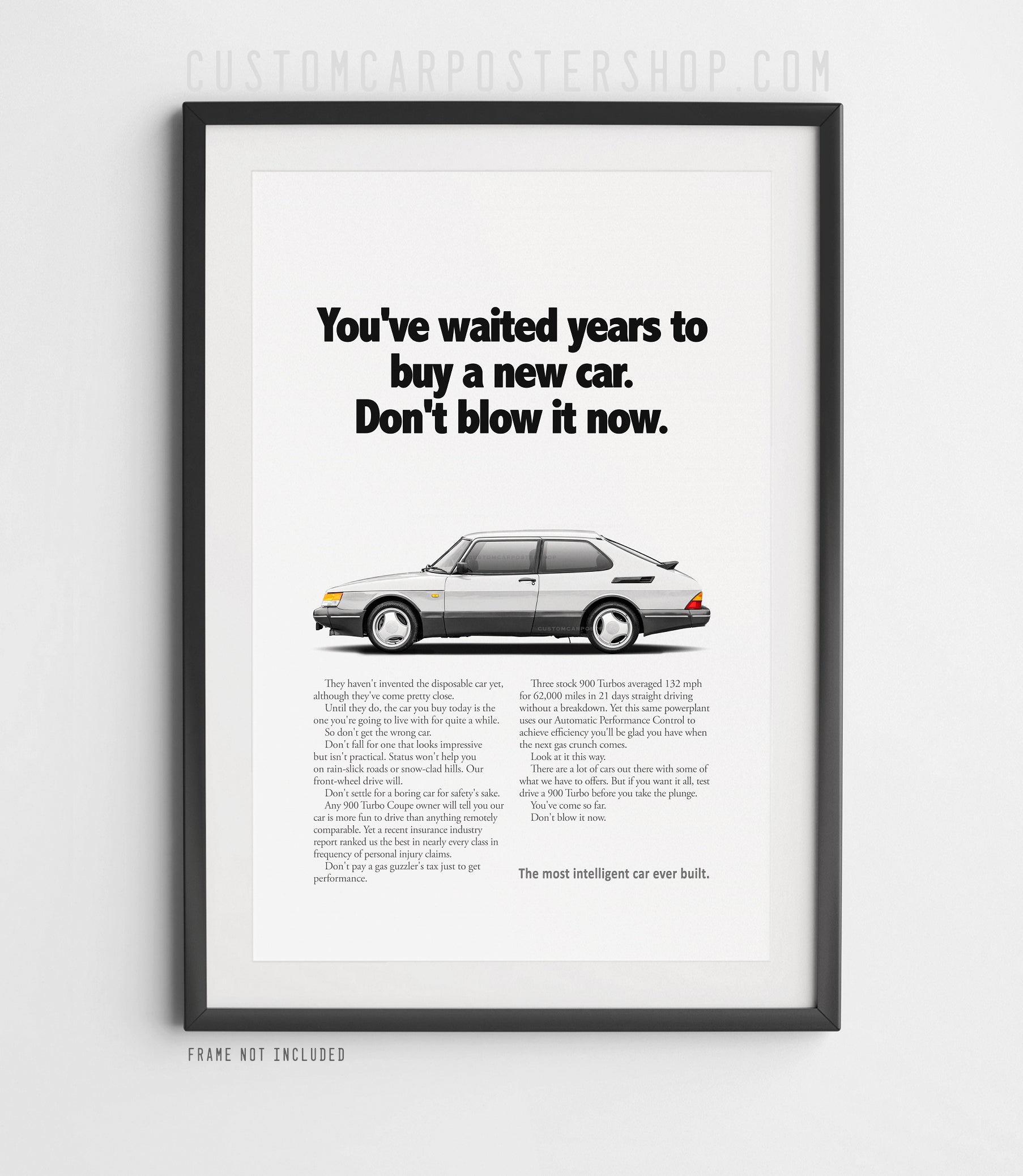 Saab 900 Turbo Coupe Classic Print Ad - Don't Blow it