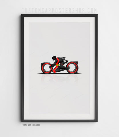 Our new TRON: Ares Light Cycle print features Ares' stunning light bike in the movie.